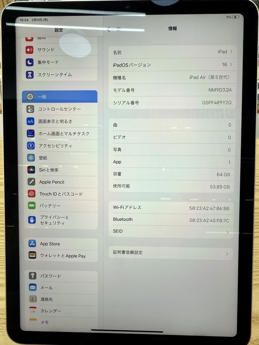 Ipad Air 5 M1 2022 10.9in 64GB Like New 98% 09Y2G