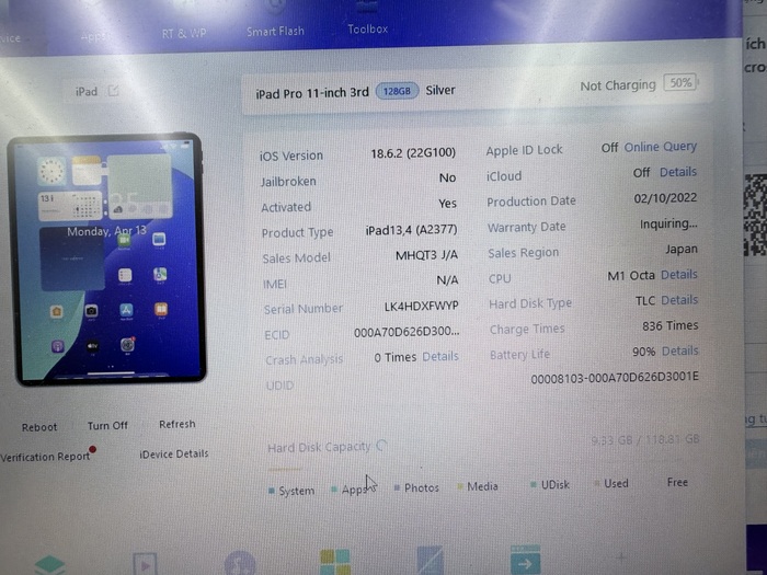 Thông tin sản phẩm : 128GB / bản wifi / Chíp M1 – màn 11in / pin 90% / màn đẹp , viền máy có xước / màu Bạc