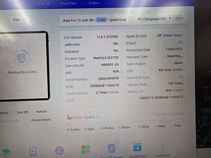 Ipad Pro M2 2022 11in 512GB like new 98%. H9YTF